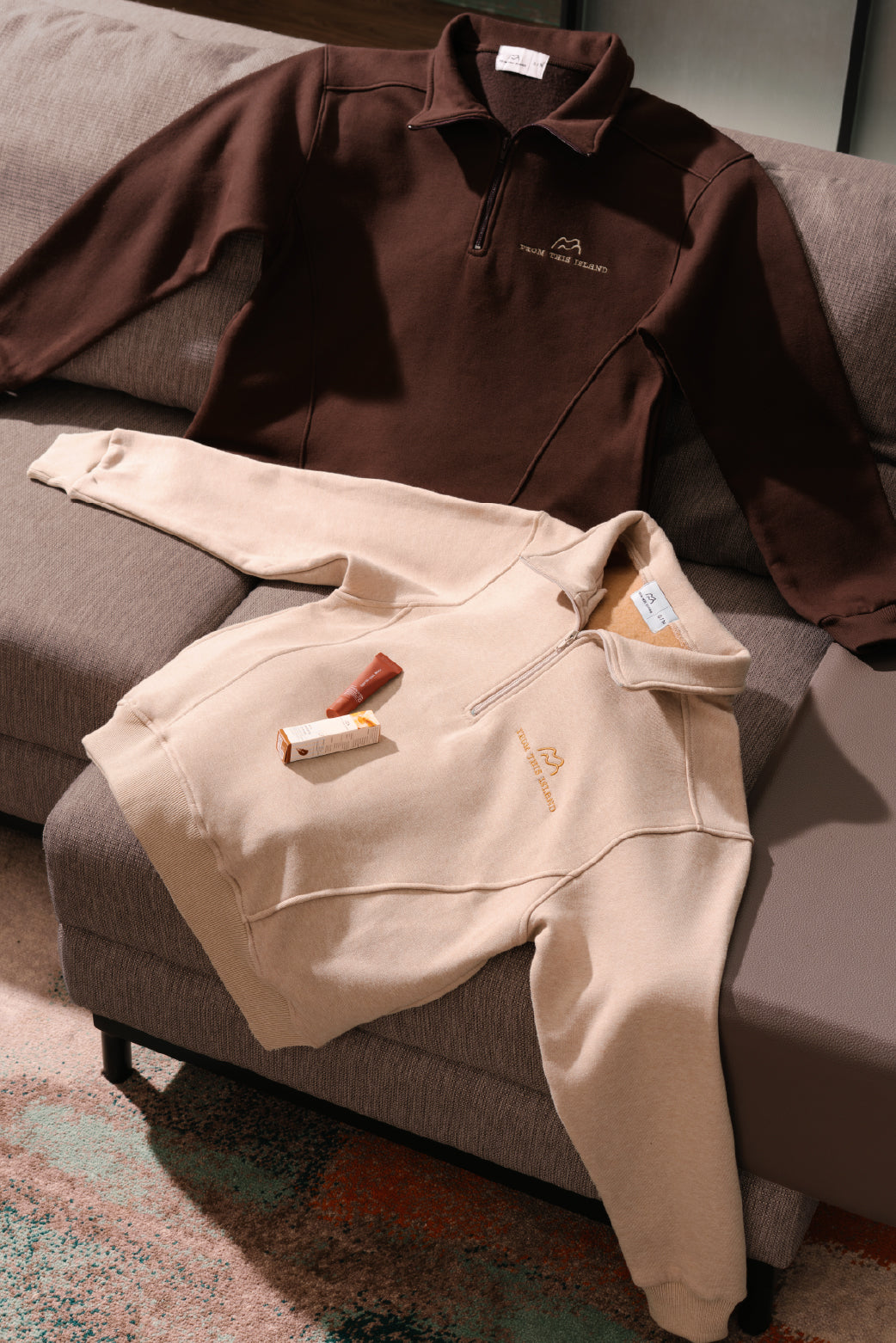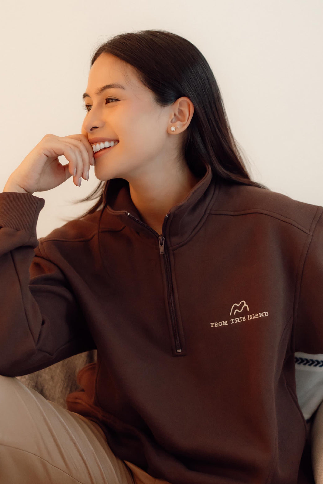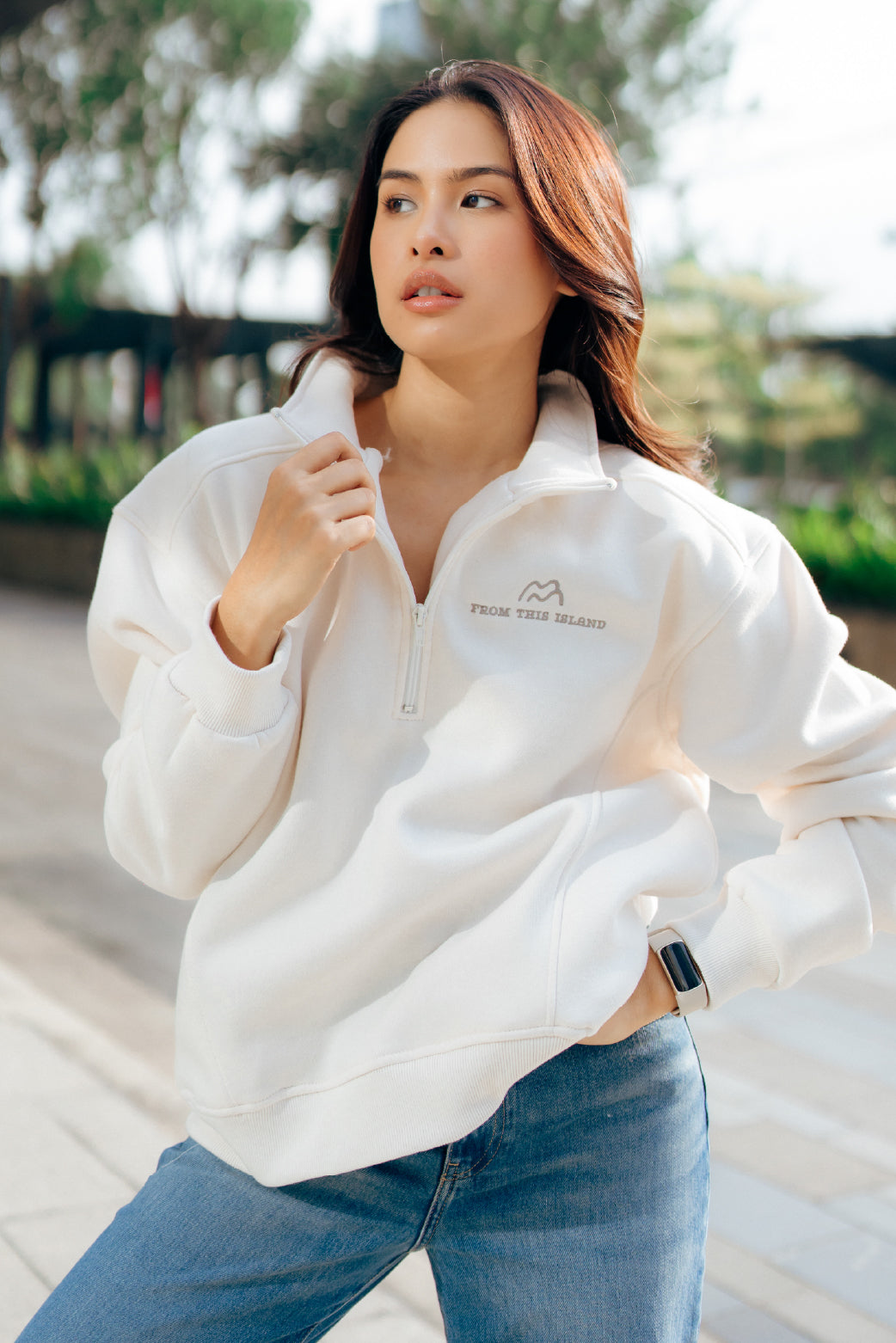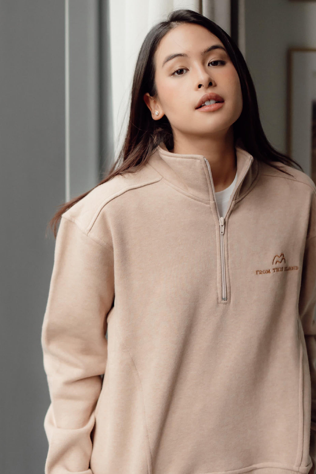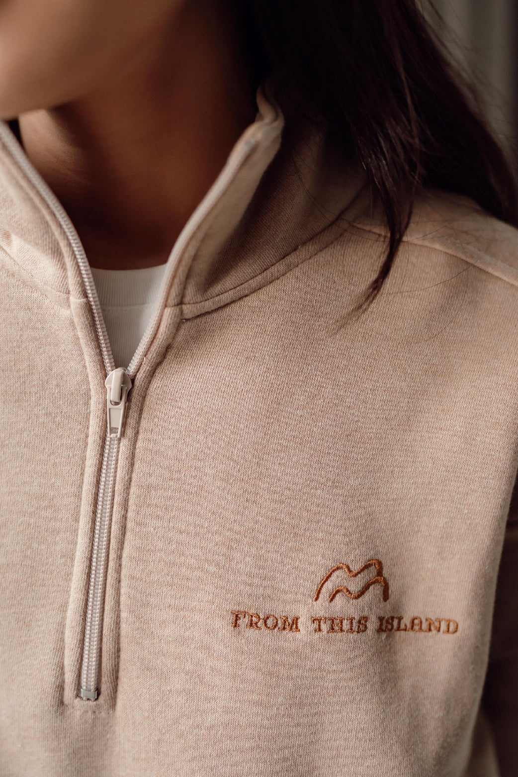 Oversized sweater with 1/4 zipper that looks sporty and stylish, with super soft fleece on the inside, this sweater can warm the body but is breathable and has good sweat absorption. This sweater has the typical From This Island logo in the left corner. Combining fashion and functionality, this sweater is suitable for layering or wearing alone. Suitable for casual events, to cool and cool places or just to hang out at home.